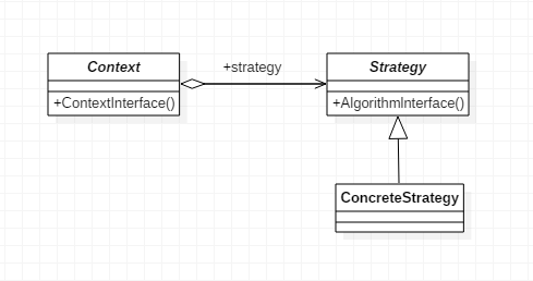 在策略模式中,算法被定义为一组接口,并且每个算法都有自己的实现类。这些算法实现类通常共享一个公共接口,使得它们可以互换使用。在运行时,客户端可以根据需要选择其中一种算法实现,并将其传递给上下文对象,以便使用该算法执行特定的行为。用图表示如下: